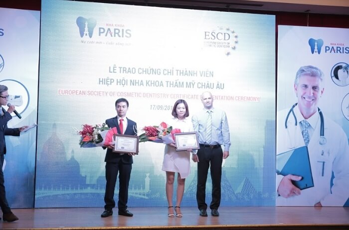 Sau khi nhìn nhận, đánh giá chuyên sâu về mặt chuyên môn, Hiệp hội nha khoa thẩm mỹ châu Âu ESCD đã quyết định trao tặng chứng chỉ thành viên có hiệu lực quốc tế cho nhiều bác sĩ nha khoa Paris.