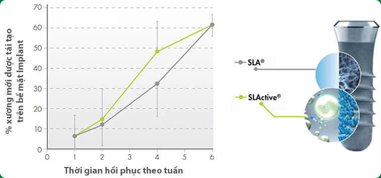 Công nghệ Ghép răng Implant 4S sở dĩ có thể hỗ trợ rút ngắn được thời gian trồng răng Implant là bởi có thể rút ngắn được thời gian tích hợp xương và lành thương nhanh chóng hơn sau khi đặt trụ răng Implant vào xương ổ.